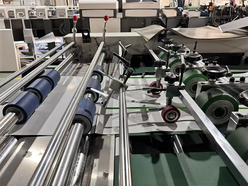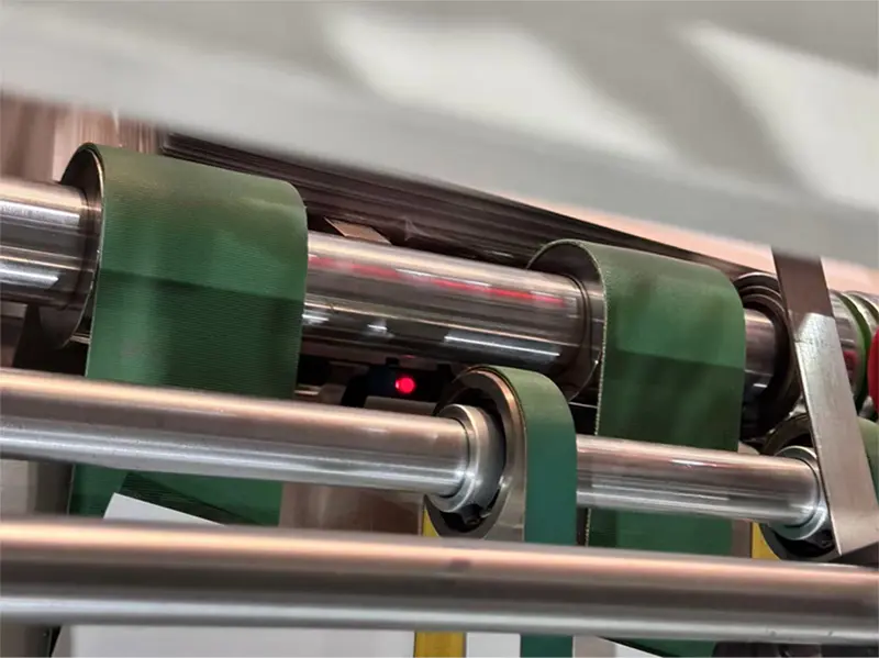 Induction electric eye, sensing the length of the paper, if the length of the paper changes, the belt will accelerate, and the baffle of the take-up machine will overturn and kick out the paper.